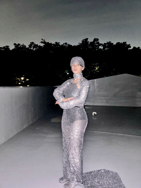 USELESS ARMOR is a performance art costume made over the course of a year from over 20,000 recycled pop tabs and wire. USELESS ARMOR is an oxymoron; armor is an inherently useful garment that protects life and can facilitate the ‘protection’ of a nation or empire. But the armor I have made is useless for various reasons: it is a heavy, long dress, which would be dysfunctional in battle; it is made out of ‘useless’ discarded soda can tabs; and in the process of making it, I became more ‘useless’ by spending hours of my life bending, cutting, and assembling it. USELESS ARMOR allowed me to internalize long term, intentional, and unglamorous development, a counter gesture to the aggressive, constant, never-ending obsession with growth to the detriment of ourselves and the planet. Thus, I view the process of making the dress through the lens of activism and performance.